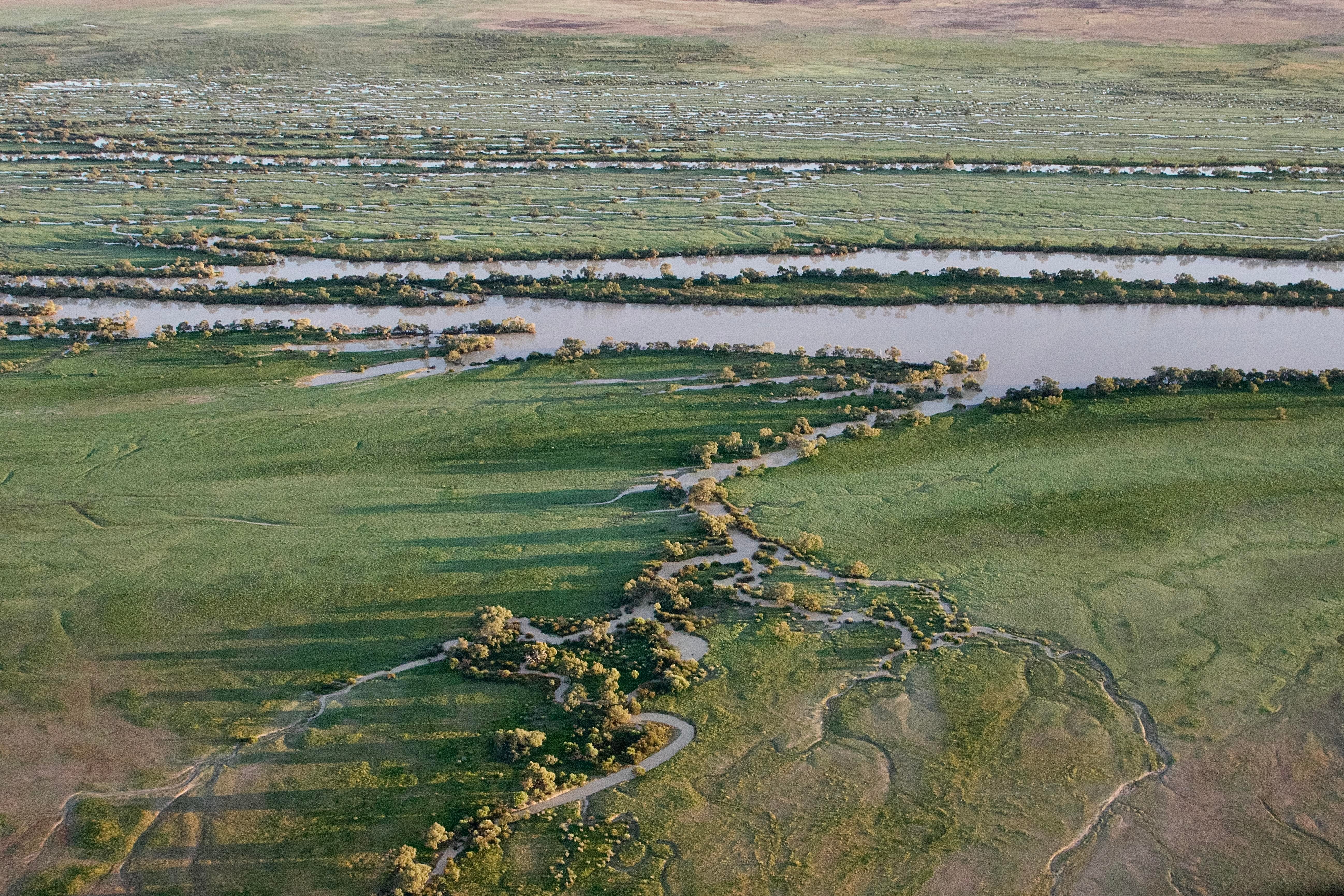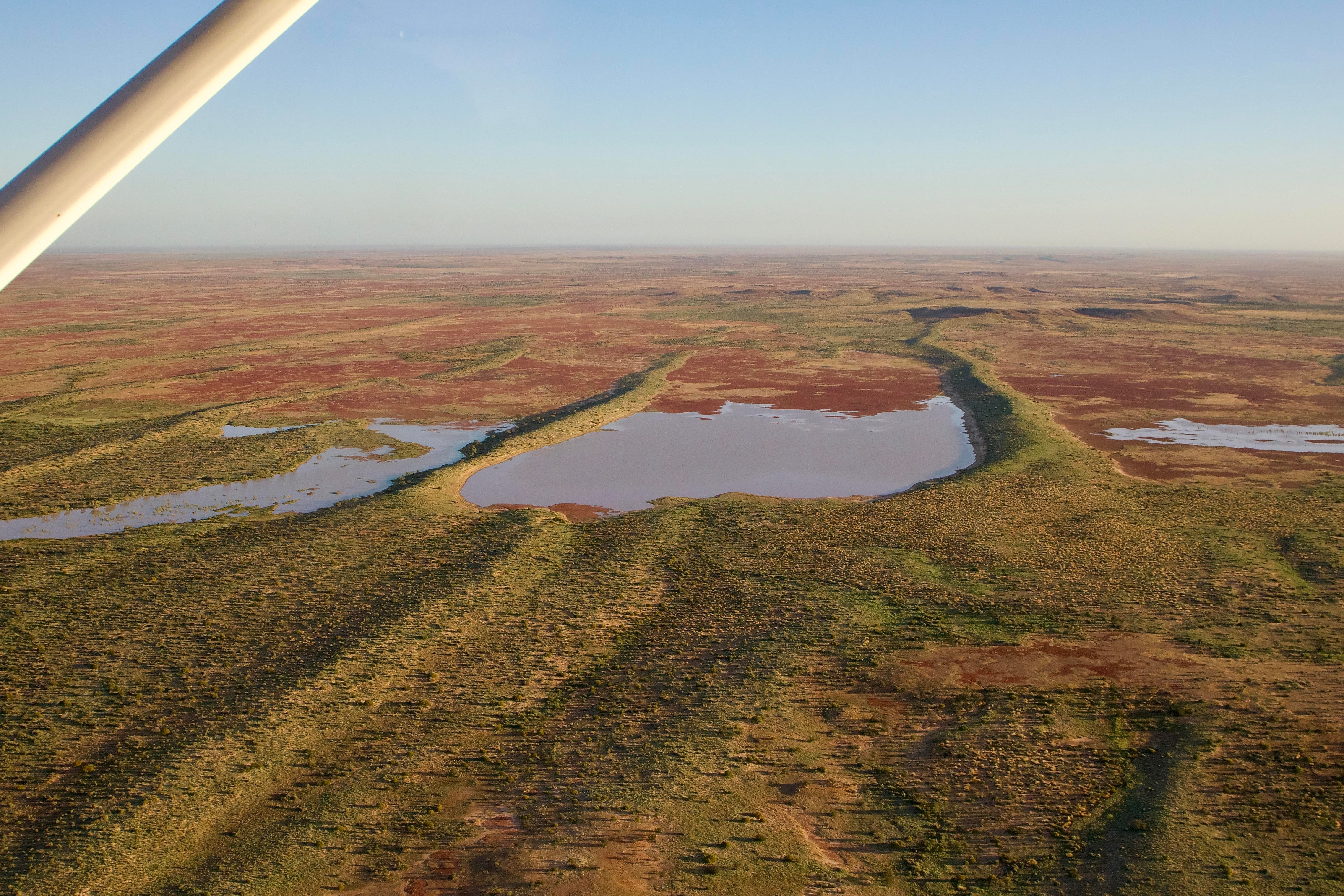 When dry, the lake forms a dazzling white salt crust. When full, it becomes a thriving wetland, attracting thousands of birds including pelicans, banded stilts, and terns. Life returns to the desert in dramatic style, and to fly it is an experience you will never forget.